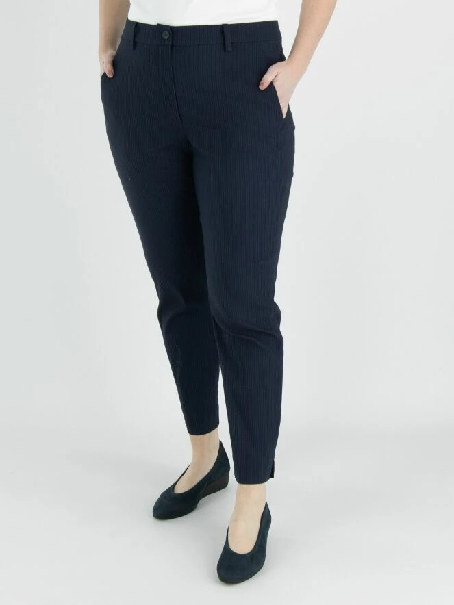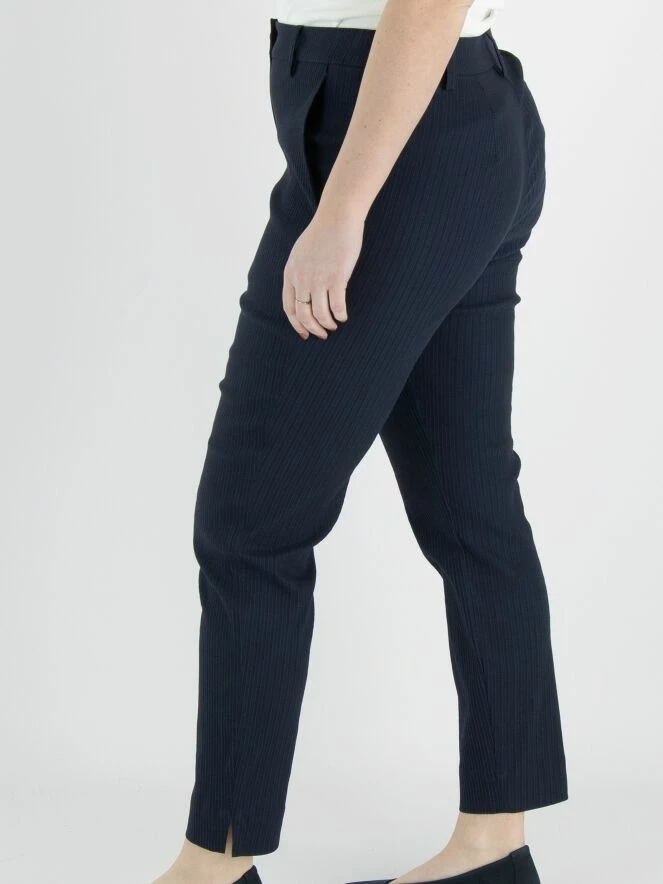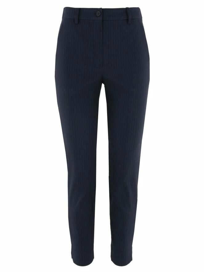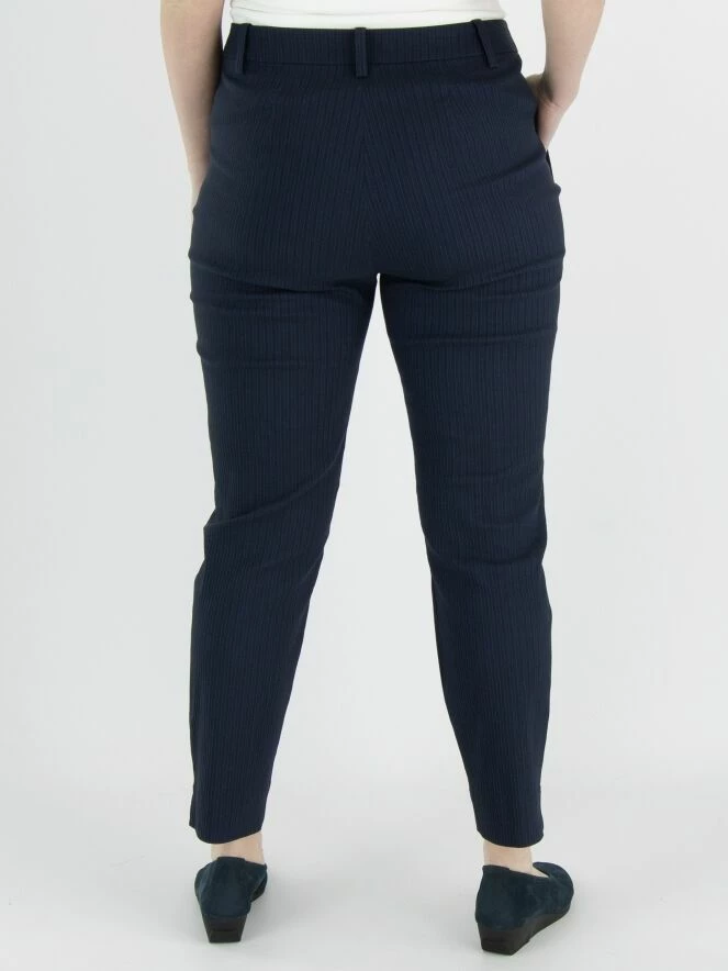 Un pantalon ajusté et largement côtelé d’Annette Görtz en bleu nuit. Le pantalon a des poches latérales et peut être lavé à 30 degrés.