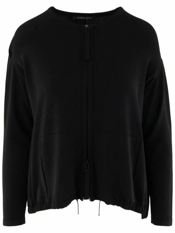 Un gilet décontracté de luxe d’Annette Görtz en noir. Le gilet est doté d’une fermeture à glissière et de poches passepoilées à la taille. Il y a un ruban dans un traitement de tunnel le long du bord inférieur, permettant d’obtenir un effet plissé. Ce gilet peut être lavé à 30 degrés.