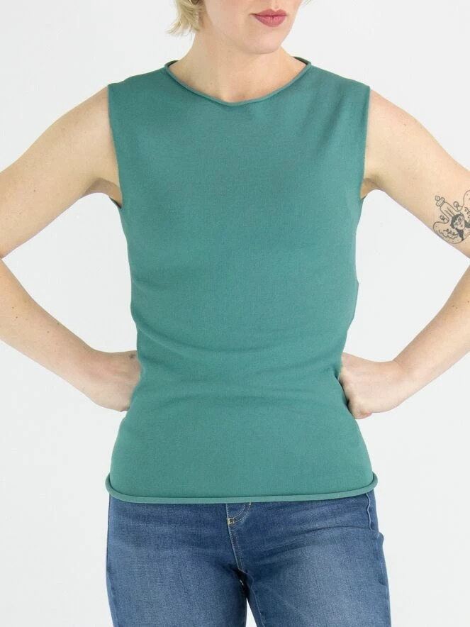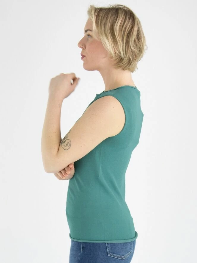 Un top luxueux d’Annette Görtz dans une couleur turquoise. Le bord de l’encolure ronde et du bas est volanté. Ce haut peut être lavé à 30 degrés.