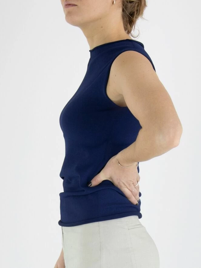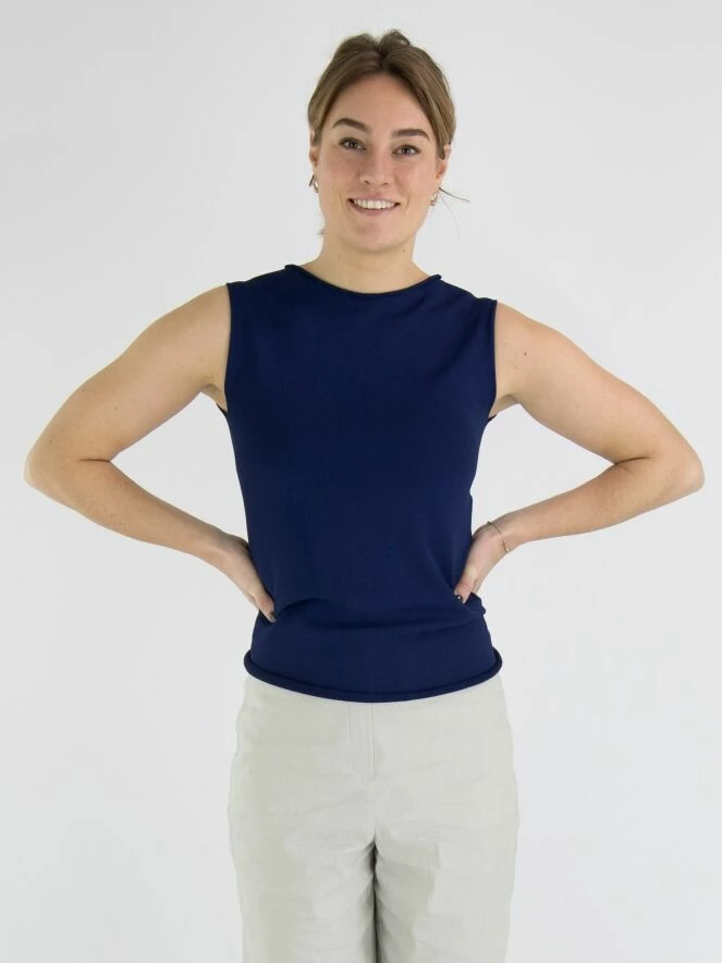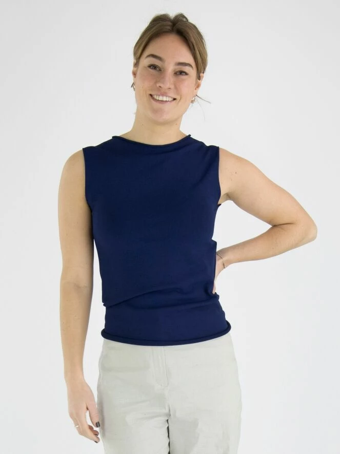 Un haut luxueux d’Annette Görtz dans une couleur bleu cobalt. Le bord de l’encolure ronde et du bas est volanté. Ce haut peut être lavé à 30 degrés.