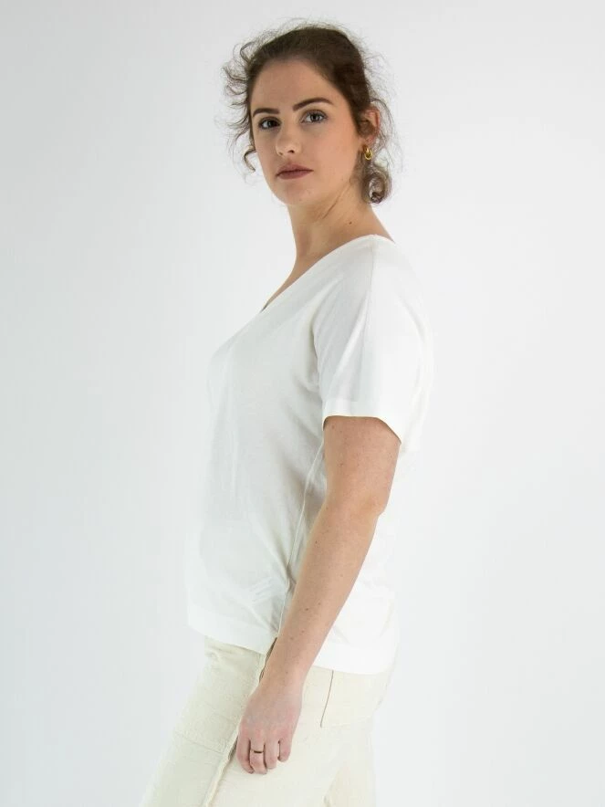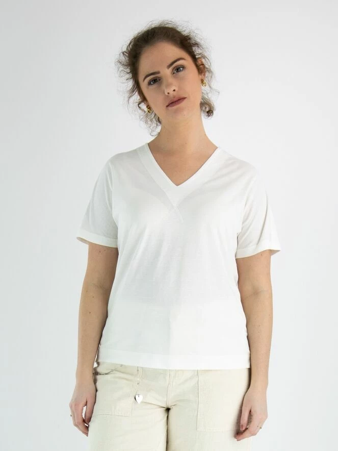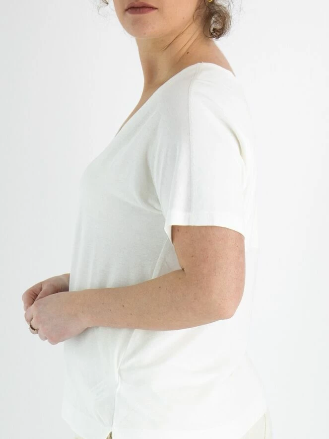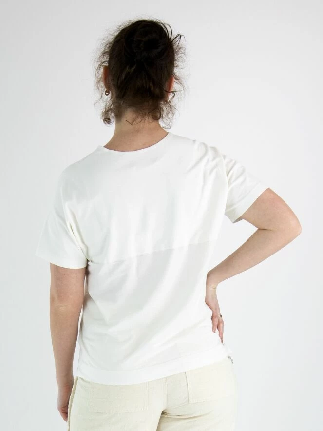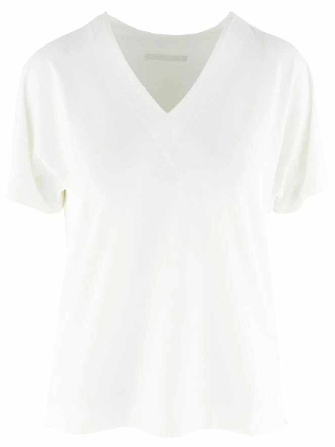 Un chemisier d’Annette Görtz en couleur blanc crème. Le chemisier a un col en V et des manches courtes. Ce chemisier peut être lavé à 30 degrés.