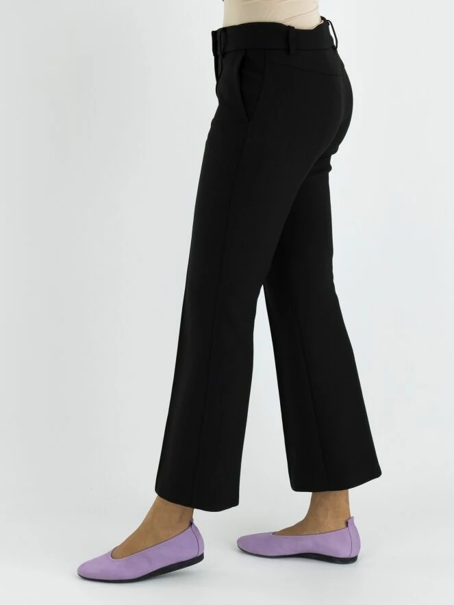 Un pantalon de Cambio en noir. Sur les côtés, il y a une couture décorative. Il y a également une couture au milieu des jambes. Le pantalon a des poches latérales et peut être lavé à 30 degrés.