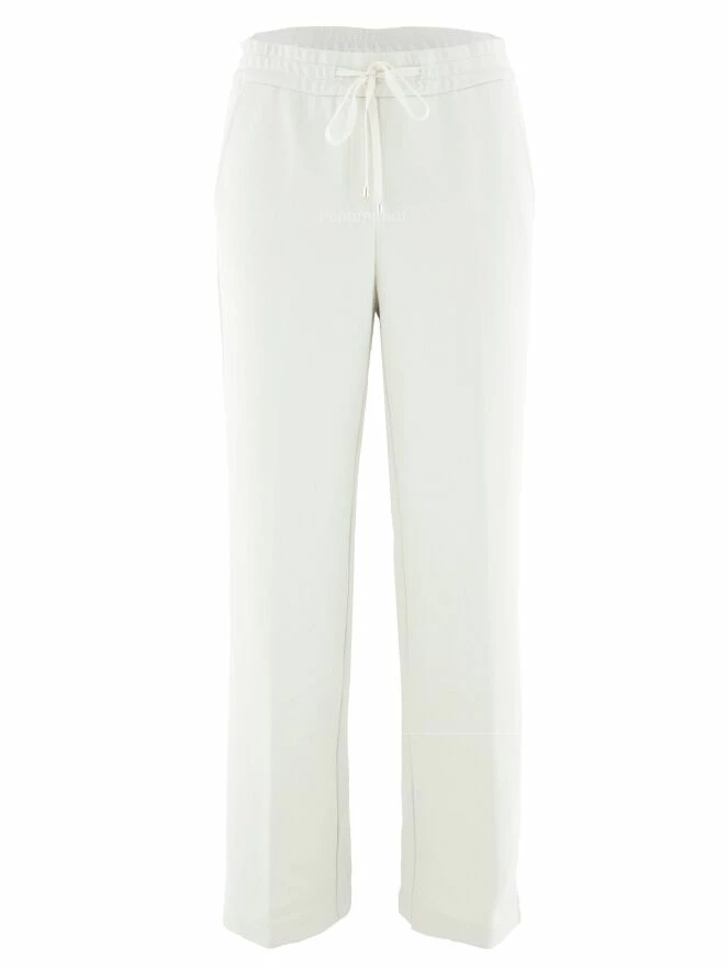 Pantalon de jogging Cambio en blanc crème. La taille est élastiquée et dotée d’un cordon de serrage en tunnel. Le pantalon a des poches latérales et peut être lavé à la main.