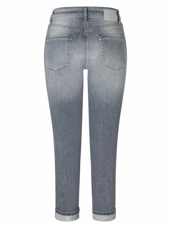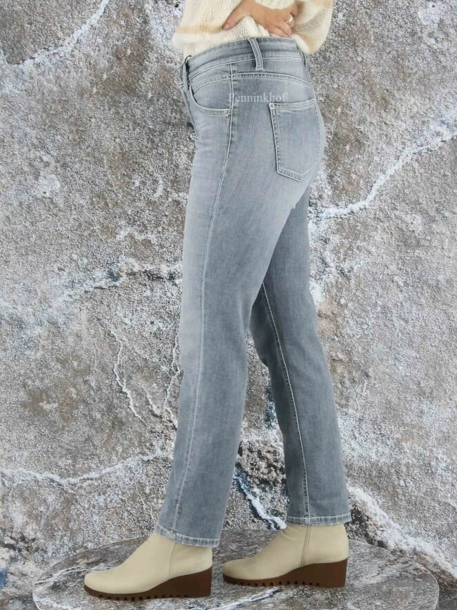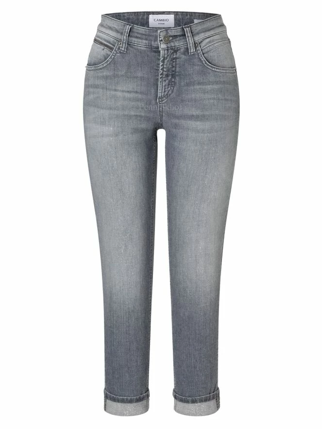 Jeans de la marque Cambio, de couleur gris délavé. Modèle à cinq poches. Le bas des jambes présente un revers. Lavage à 30 degrés.