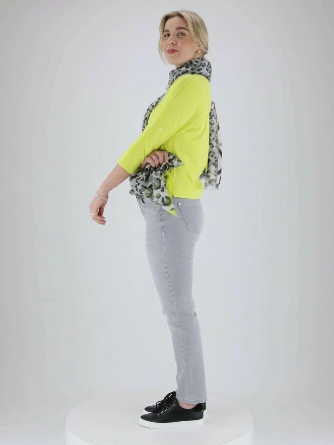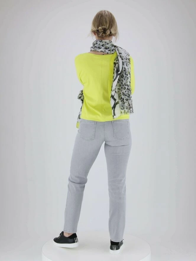 Jeans basique de la marque Cambio, de couleur gris clair. Modèle à 5 poches. Lavage à 30 degrés.