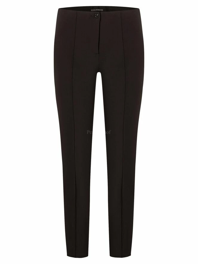 Pantalon de la marque Cambio, de couleur marron. La taille est élastiquée et la jambe est marquée par une surpiqûre centrale sur toute sa hauteur. Lavage à la main.