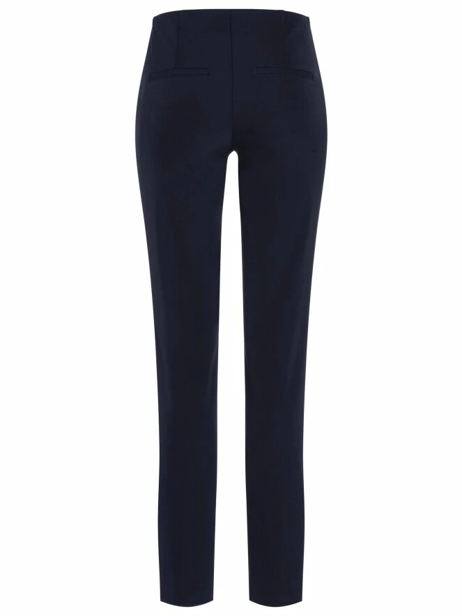Pantalon de la marque Cambio, de couleur bleu marine. La taille est équipée d’un élastique. Les jambes sont ornées d’une couture centrale. Lavage à la main.