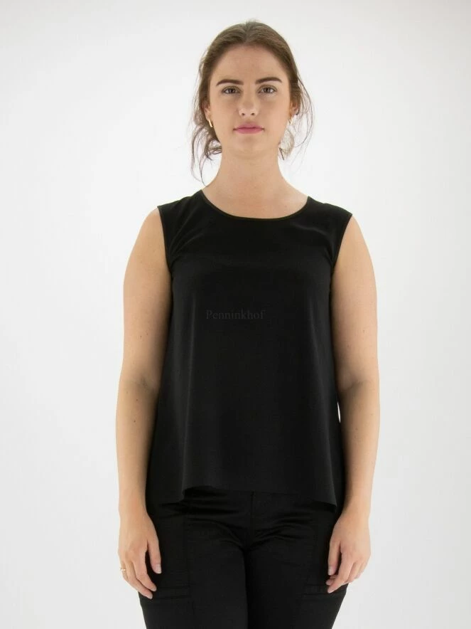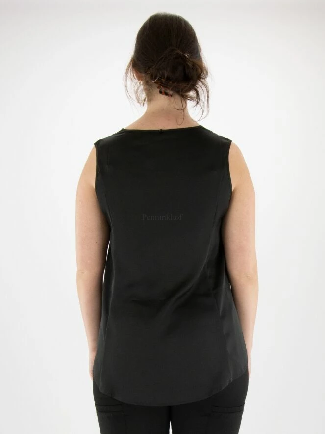 Un top de la marque High, de couleur noire. Le top est doté d’un col rond et d’une légère ligne A. Ce top peut être lavé à la main.