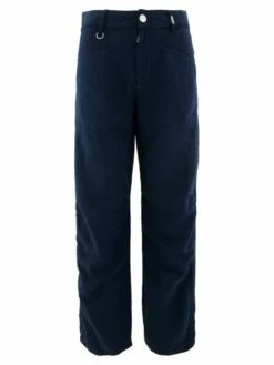 Un pantalon High de couleur bleu nuit. Le pantalon est doté de poches passepoilées coupées en diagonale et présente quelques plis au niveau des coutures latérales sous le genou. Ce pantalon peut être lavé à 30 degrés.