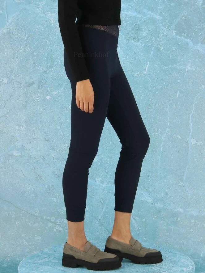Leggings de la marque High, de couleur bleu marine. La taille est équipée d’une large bande élastique en dentelle. Lavage à 30 degrés.