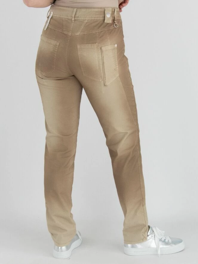 Un jean lavé de High dans des tons de sable avec des nuances plus claires sur les cuisses supérieures et en bas des jambes. Le jean est de style 5 poches et peut être lavé à la main.