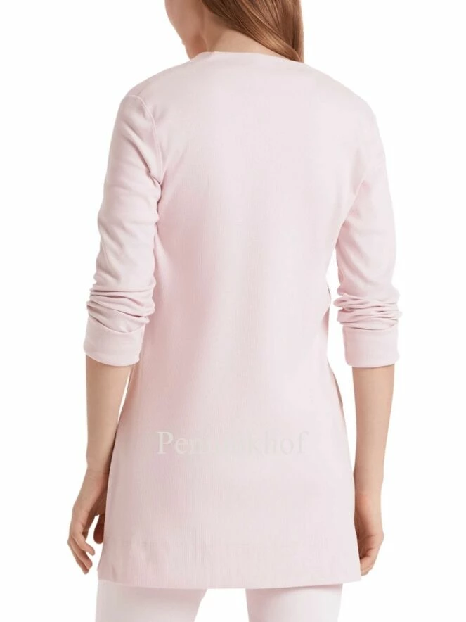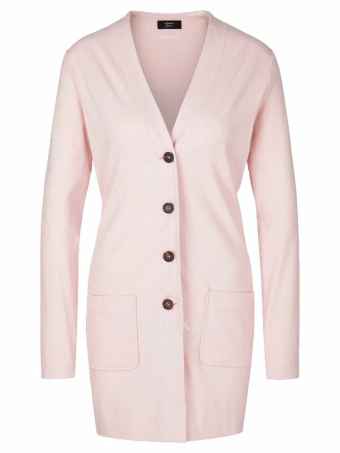 Longue veste à la coupe droite légèrement cintrée à la taille, de la marque Marc Cain essentiels, de couleur rose. Elle est dotée de 2 poches avant au niveau de la taille. La veste ferme à l’aide de 4 gros boutons. Lavage à 30 degrés.
