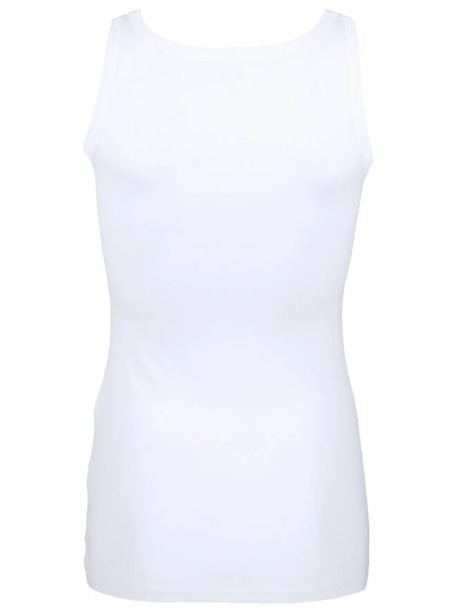 Long top de la marque Marc Cain essentiels, blanc, à décolleté rond et bretelles de 3 cm de large. Lavage à 30 degrés.