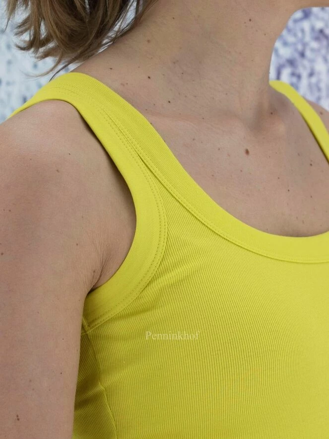 Débardeur de la marque Marc Cain, de couleur vert lime. Le top présente un col rond et peut être lavé à 30 degrés.