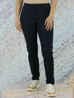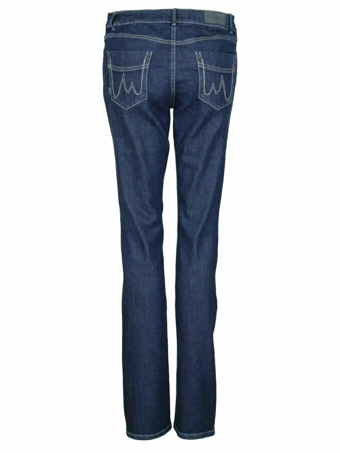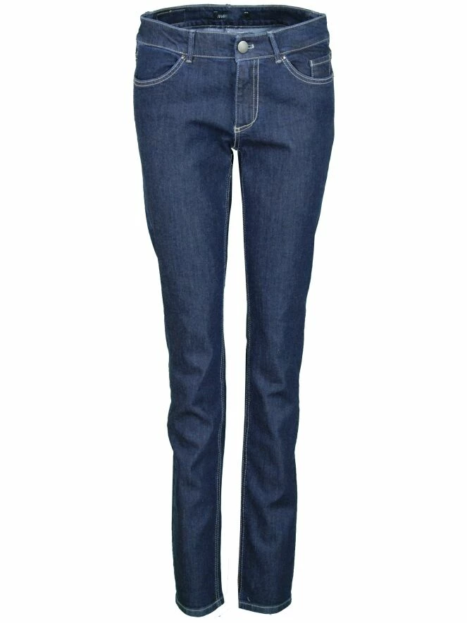 Jeans étroit, de la marque Marc Cain, de couleur bleu foncé denim. Modèle 5 poches avec fermeture Eclair invisible. Lavage à 30 degrés.