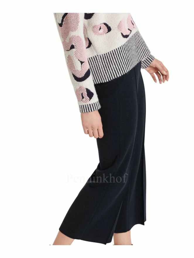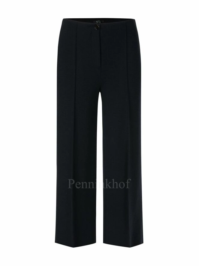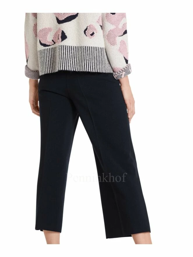 Pantalon à jambes larges et plis de repassage, de la marque Marc Cain, de couleur bleu marine. Il est équipé d’une bande élastique à la taille.Lavage à la main.