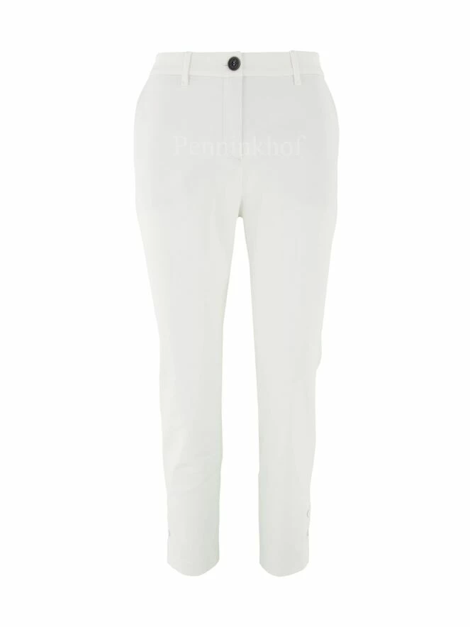 Pantalon de la marque Marc Cain, de couleur blanc crème. Il est équipé de poches latérales. Le bas des jambes présente une fente fermée par 2 boutons pression. Lavage à 30°C.
