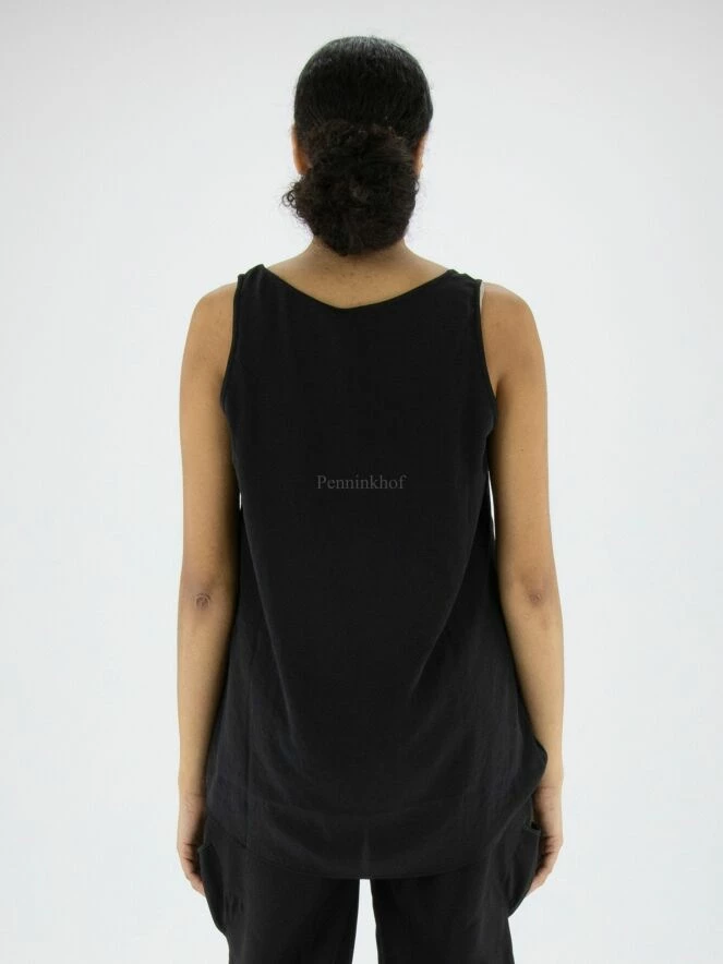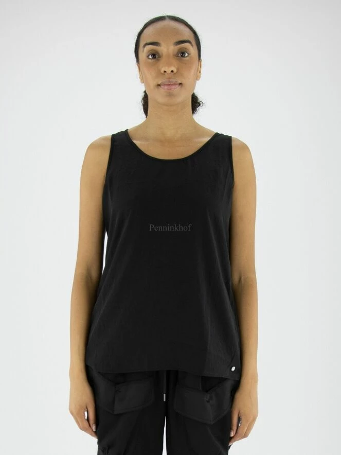 Top Marc Cain en tissu lisse et mat de couleur noire. Le top a une encolure ronde et peut être lavé à 30 degrés.