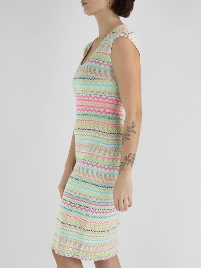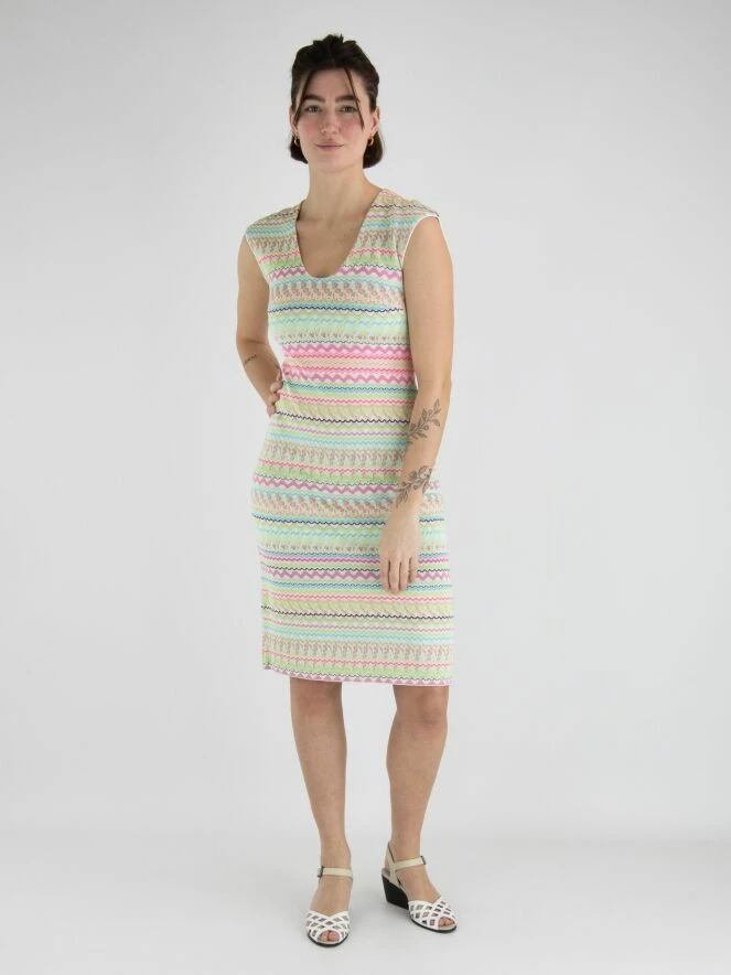 Une robe de Marc Cain avec un imprimé Missoni multicolore. La robe est dotée d’un décolleté en V arrondi et peut être lavée à 30 degrés.