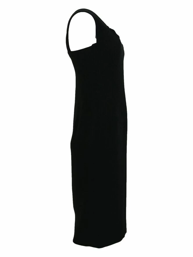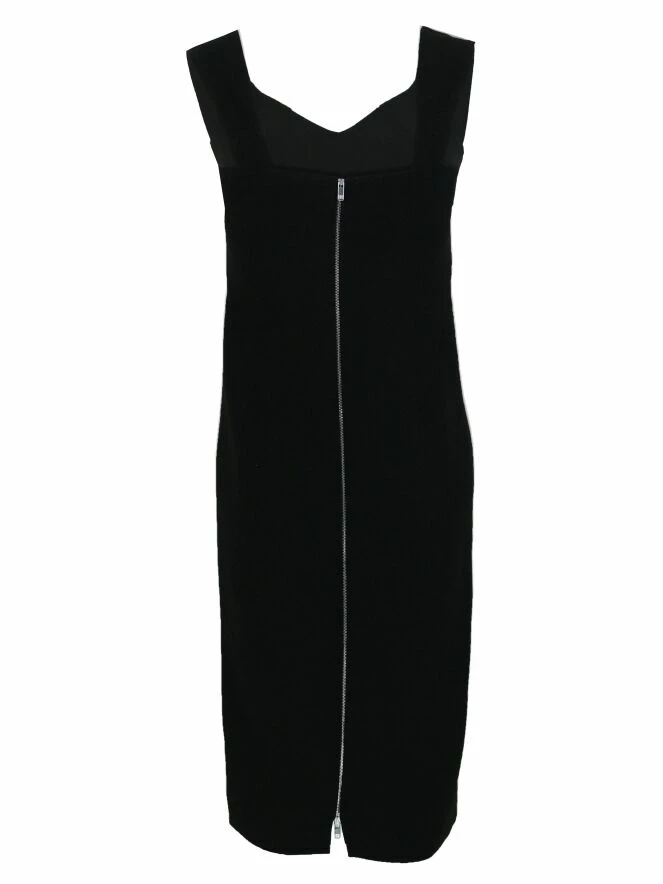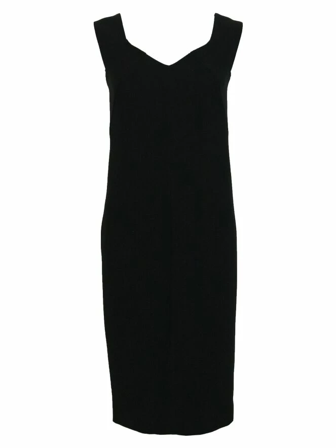 Robe droite de la marque Riani, de couleur noire. La robe est à bretelles larges de 8 cm et envolure en V avant et arrière. A l’arrière, une longue fermeture Eclair traverse la robe en son milieu. Lavage déconseillé.