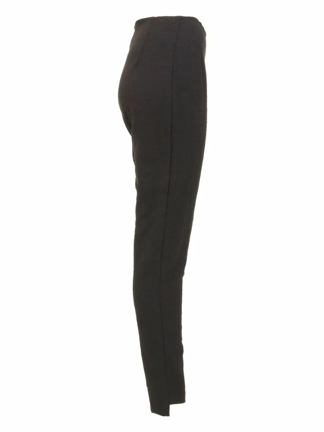 Pantalon de la marque Rundholz, de couleur marron moka. Le tissu présente une structure fine et ondulante. Le bas des jambes est plus long à l’arrière. Lavage déconseillé.